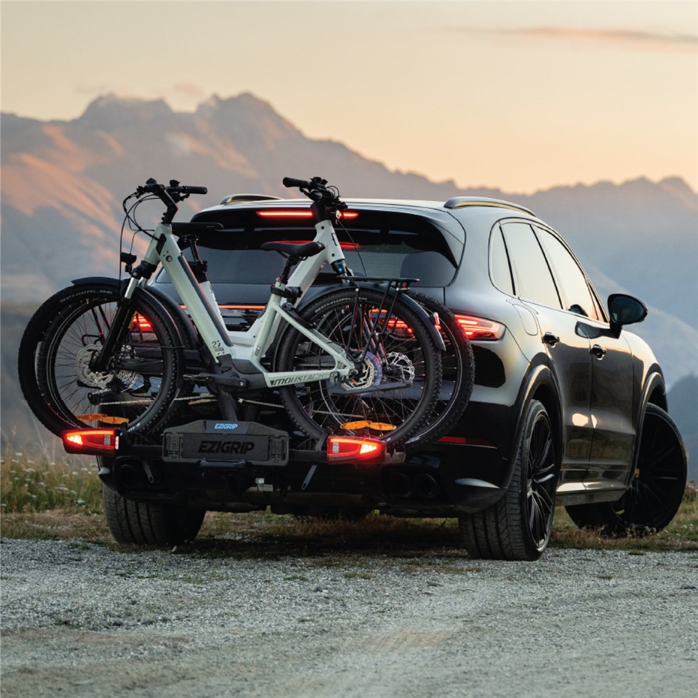 The E-Volve 2 is a premium bike rack designed for effortless loading and transport of a wide range of bikes including E-bikes. The rack is made from high-quality materials for greater durability and lightweight performance alongside innovative features like the four-functional LED lights that ensure visibility during your travels.