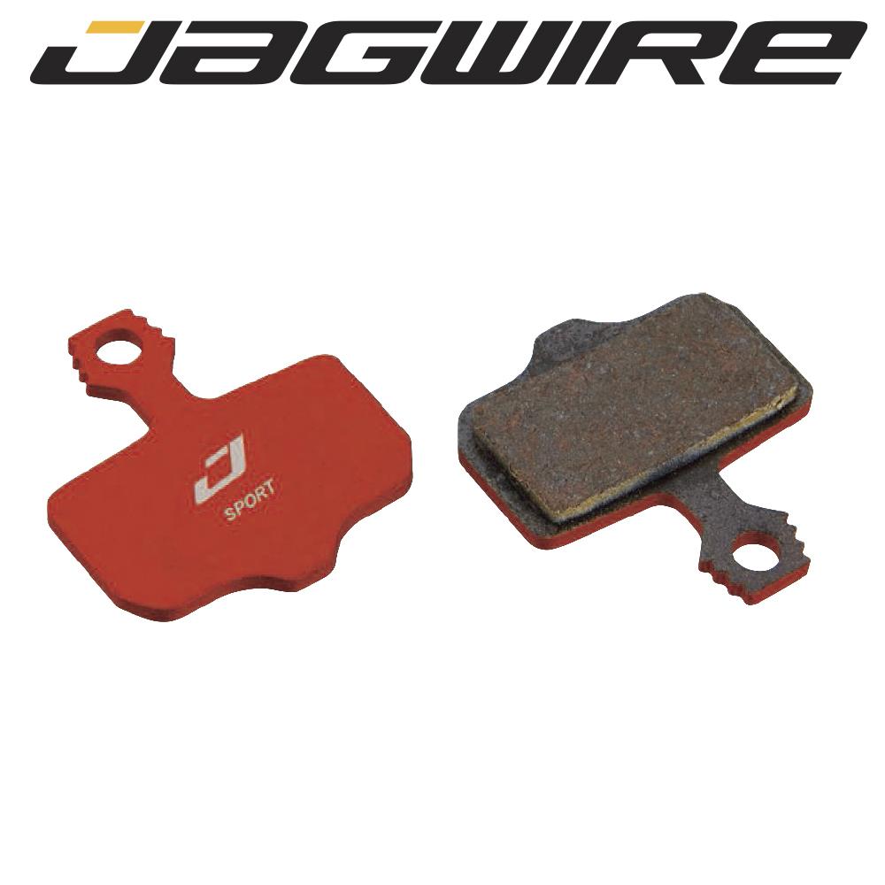 Jagwire Sport Semi-Metallic disc brake pads are a great improvement from OEM. They feature a high-performance semi-metallic compound that blends the low-noise of a resin pad with the durability of a metallic pad. Mounted to a steel backing plate, these are a great all-purpose pad.