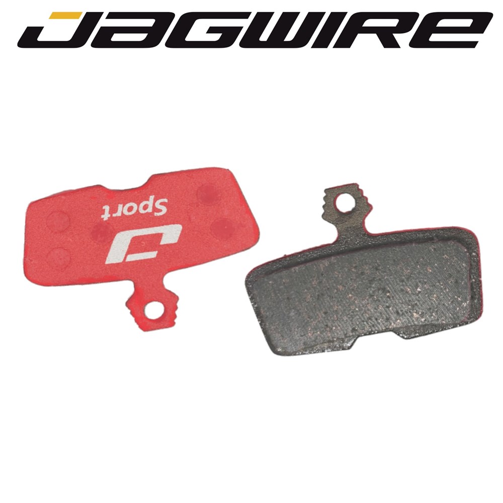 Jagwire Sport Semi-Metallic disc brake pads are a great improvement from OEM. They feature a high-performance semi-metallic compound that blends the low-noise of a resin pad with the durability of a metallic pad. Mounted to a steel backing plate, these are a great all-purpose pad.