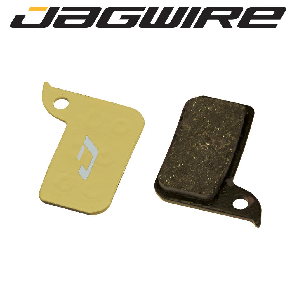 Jagwire Sport Semi-Metallic disc brake pads are a great improvement from OEM. They feature a high-performance semi-metallic compound that blends the low-noise of a resin pad with the durability of a metallic pad. Mounted to a steel backing plate, these are a great all-purpose pad.