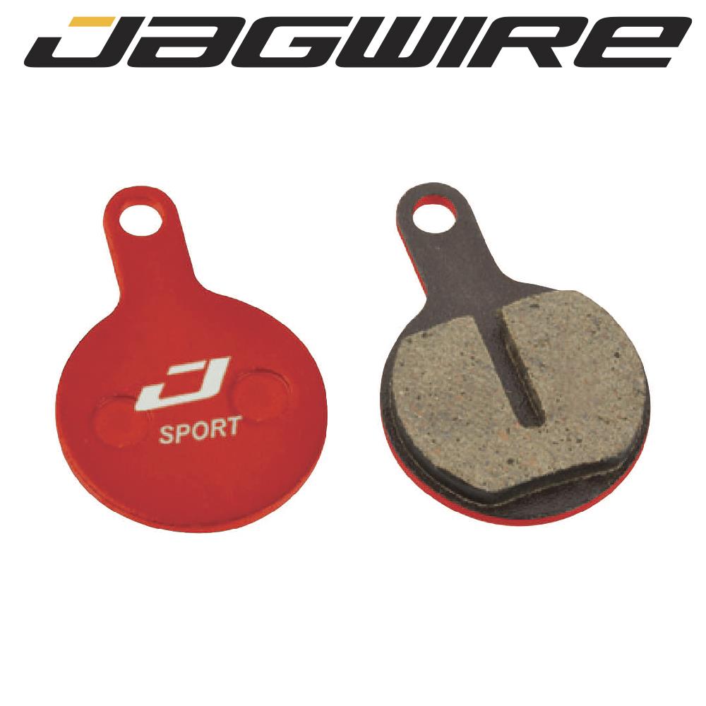 Jagwire Sport Semi-Metallic disc brake pads are a great improvement from OEM. They feature a high-performance semi-metallic compound that blends the low-noise of a resin pad with the durability of a metallic pad. Mounted to a steel backing plate, these are a great all-purpose pad.