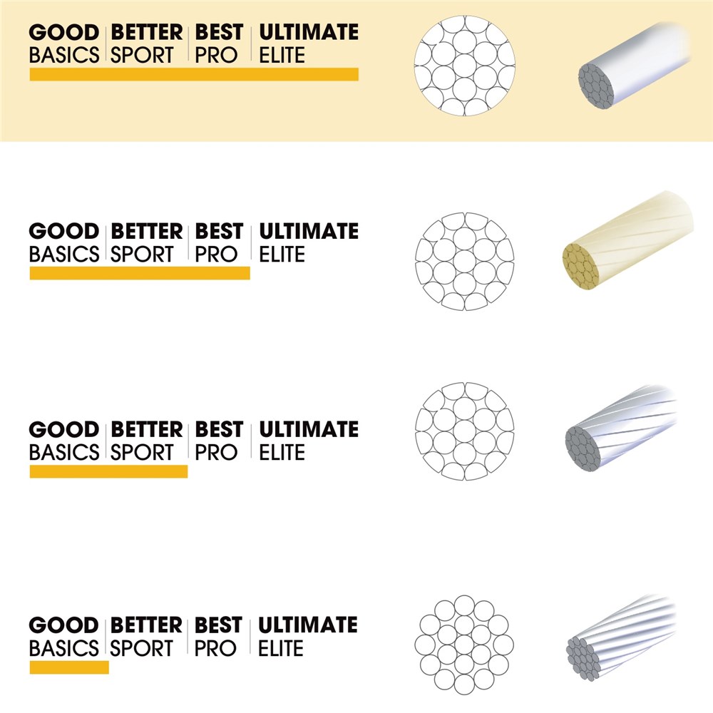 High quality stainless steel strands are wound together in a spiral pattern to form a strong, durable cable. The cables are then pre-stretched and pulled through a die that removes the rough edges creating a smooth, slick surface. The last stage is an additional, proprietary cleaning and nano polishing process that delivers an ultra-slick surface.