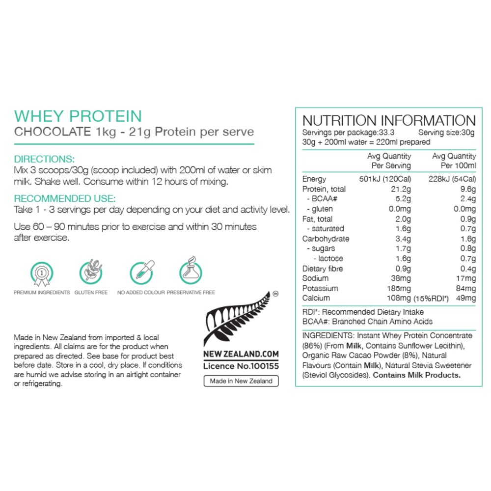 Premium natural protein drink using whey protein from the green pastures of New Zealand’s South Island, combined with raw organic flavourings and sweetened with natural stevia.