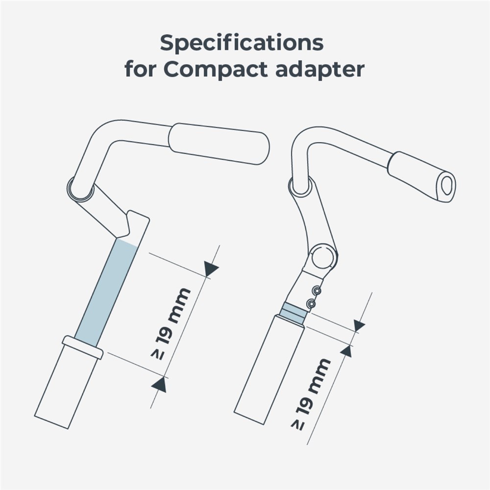 Suitable for Ahead stems with a limited mounting space up to 19 mm. With the included inserts, you can also make the Compact Adapter suitable for stems with diameters of 21 to 28mm