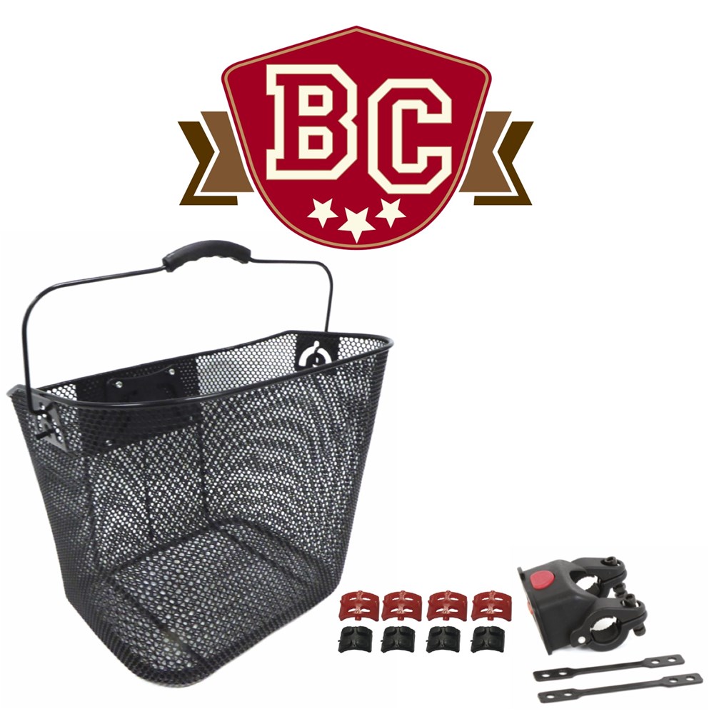 Carry handle and quick release handlebar mount for easy removal of basket.