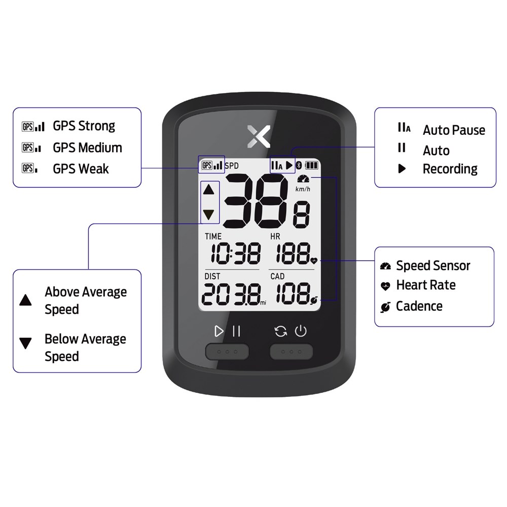 Note: For heart rate and cadence monitoring, ANT+ compatible sensors needs to be installed.