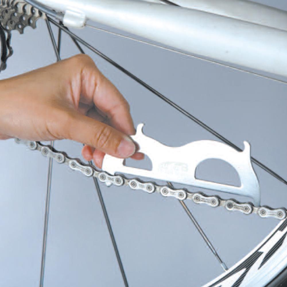 Compatible with all bicycle chains from single speed to 12 speed. Precision chain checker. Quickly and accurately indicates the wear and stretch of the chain. Laser cut and made of stainless steel. When chain is between 0.75% and 1% worn, a replacement is suggested. Chain hook is a must for you to assemble or break the chain.