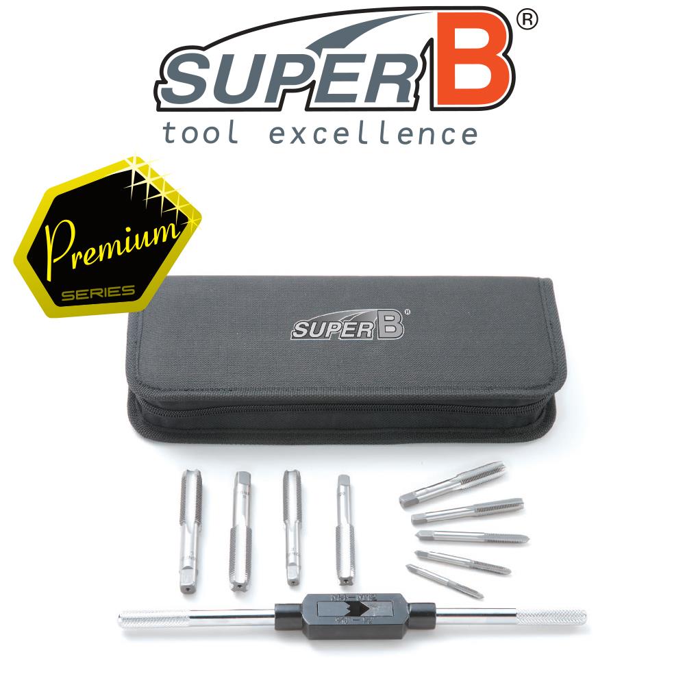 Designed to be a complete set combining top quality precision frame taps and pedal taps with a tap handle. Size: 1/2" x 20 left & right; 9/16" x 20 left & right 4 mm x 0.5; 5 mm x 0.8; 6 mm x 1.0; 8 mm x 1.0; 10 mm x 1.0.