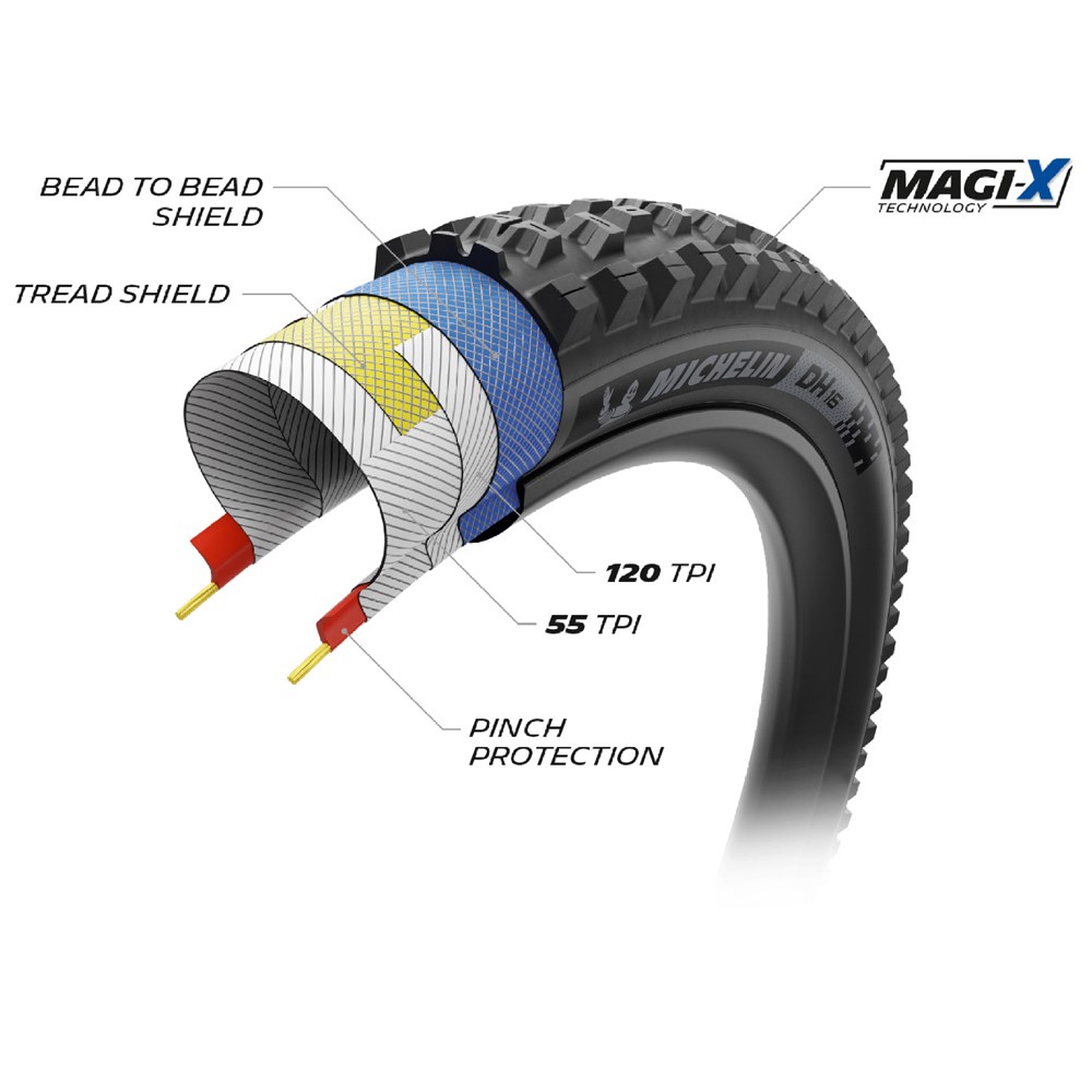BI-COMPOUND: Magi-X: Developed and used in the Enduro World Series competition, these especially high-performance compounds offer exceptional grip when cornering and braking in the most demanding conditions.