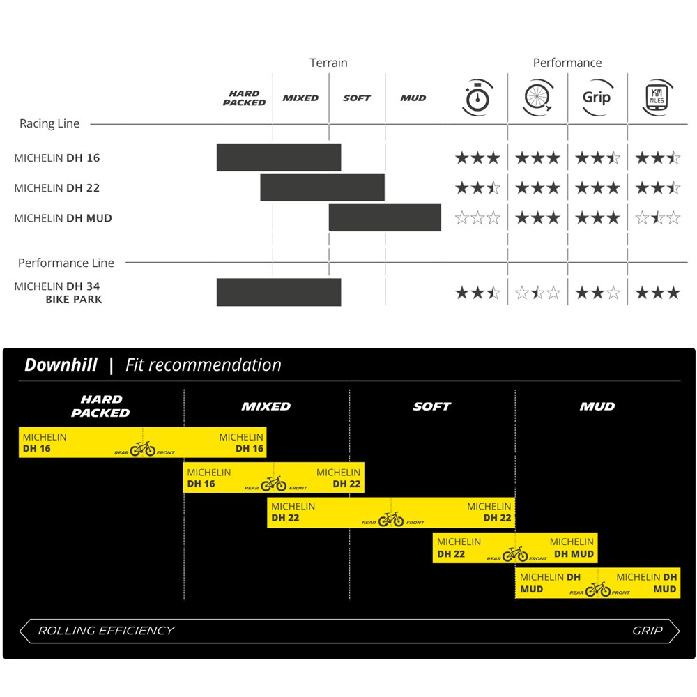 All of MICHELIN’s experience has gone into defining these latest mixes, allowing mountain bikers to obtain the optimal performance compromise between grip, efficiency and wear. Compound are produced in varying levels of shore hardness the lower the index value, the greater the gum softness; conversely, as the index value rises, the gum becomes harder.