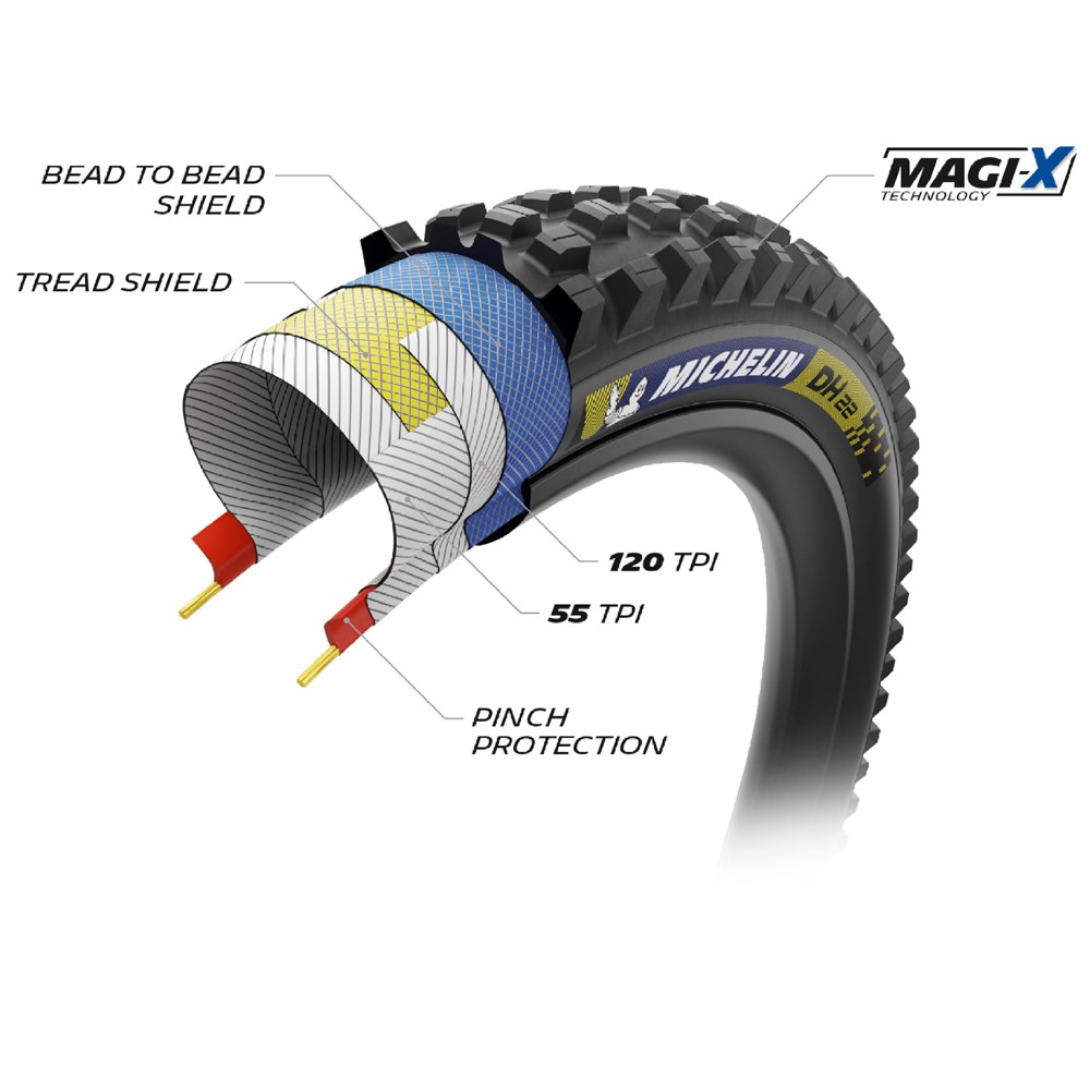 BI-COMPOUND: Magi-X: Developed and used in the Enduro World Series competition, these especially high-performance compounds offer exceptional grip when cornering and braking in the most demanding conditions.