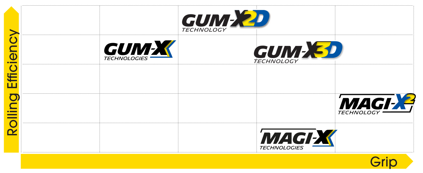 More grip: Maximum grip to win races, even at low temperatures thanks to the Magi-X compound.
