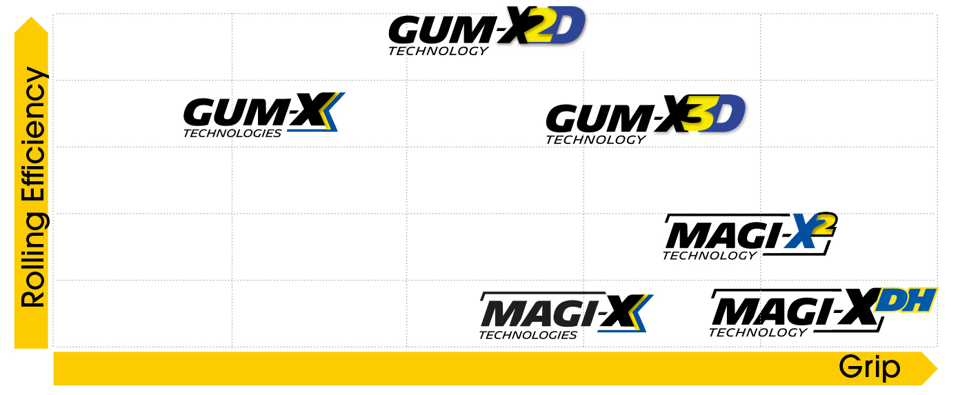 BI-COMPOUND: Magi-X-DH: Rubber compound specifically designed for Downhill for maximum grip in wet and dry conditions whatever the temperatures. Technology that ensures the most grip in the Michelin range.