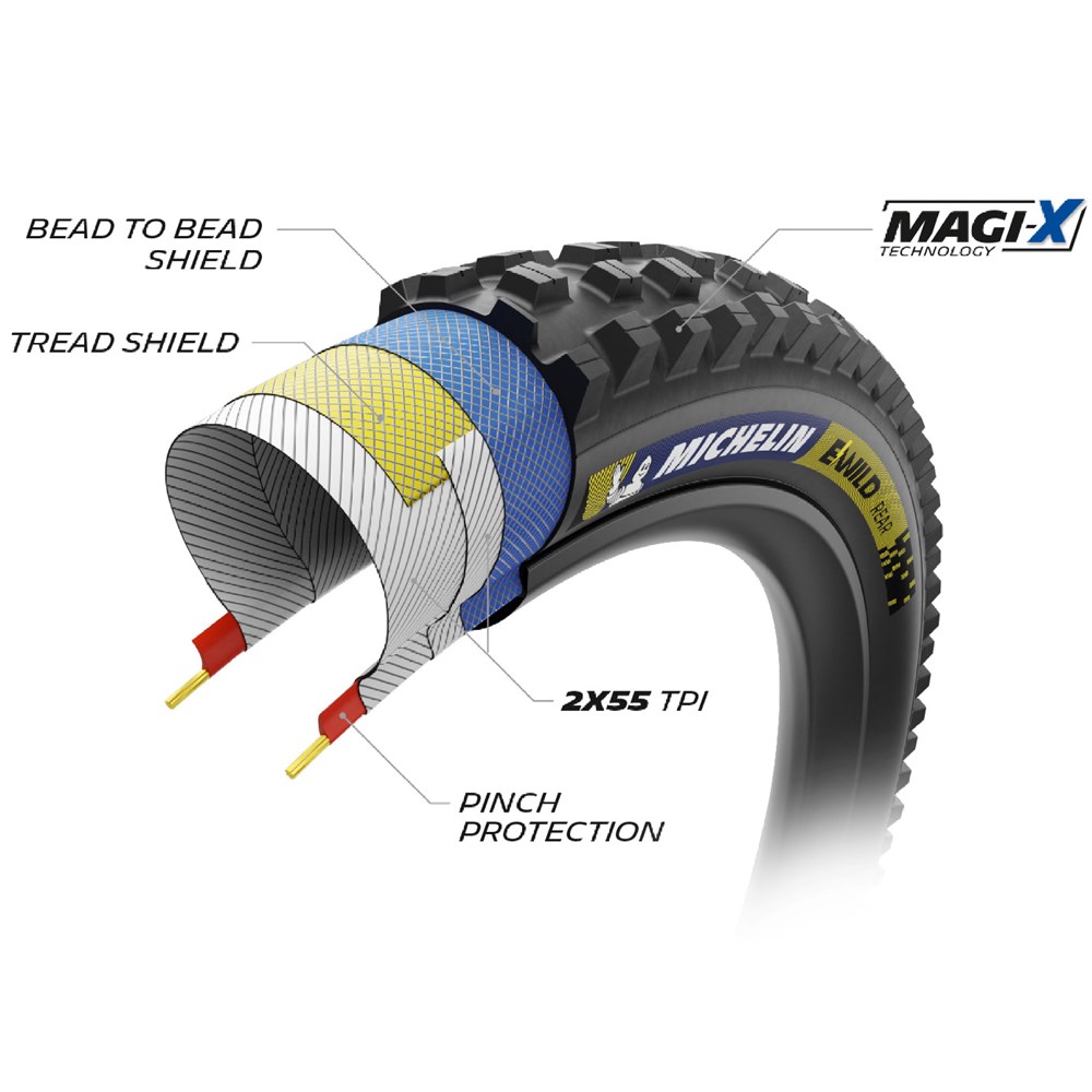 The MICHELIN E-Wild Rear tread pattern has been developed to maximize traction in climbing.