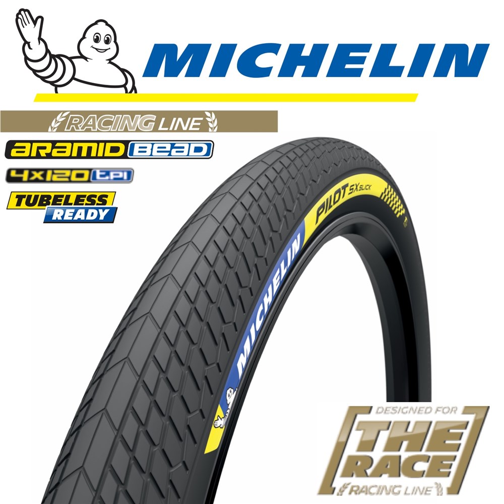 An uncompromising range for BMX race wins. Tubeless Ready technology reduces rolling resistance for optimal performance. The MICHELIN Pilot SX Slick’s central tread and the design of the side blocks help maintain momentum.
