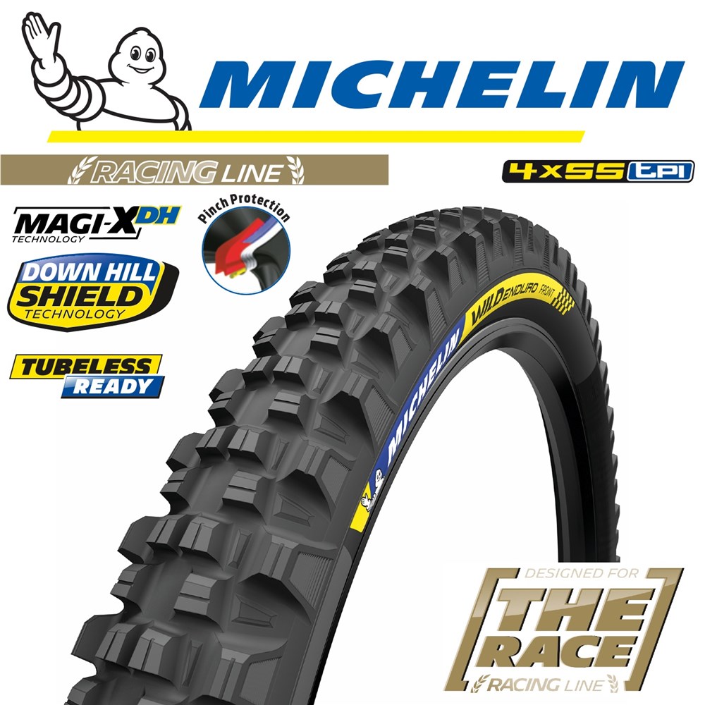 More grip: The combination of the MICHELIN Wild Enduro Front tread, Magi-X DH and the Down Hill Shield deliver maximum grip, no matter the terrain.