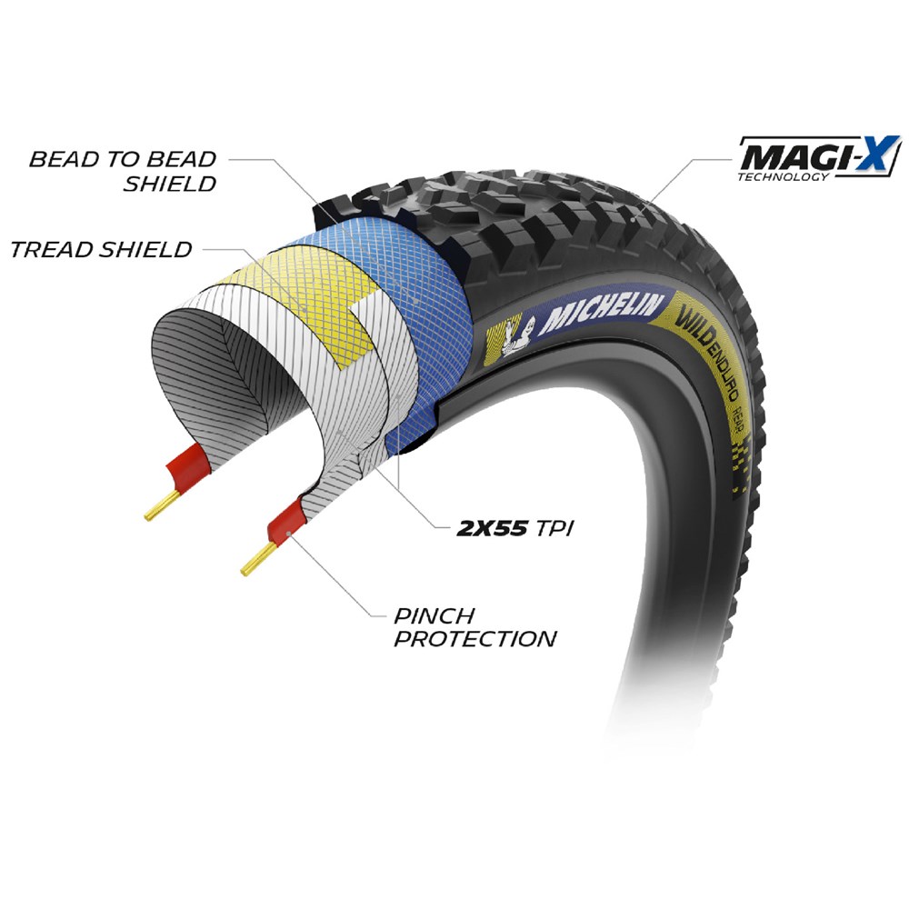 BI-COMPOUND: Magi-X: Developed and used in the Enduro World Series competition, these especially high-performance compounds offer exceptional grip when cornering and braking in the most demanding conditions.