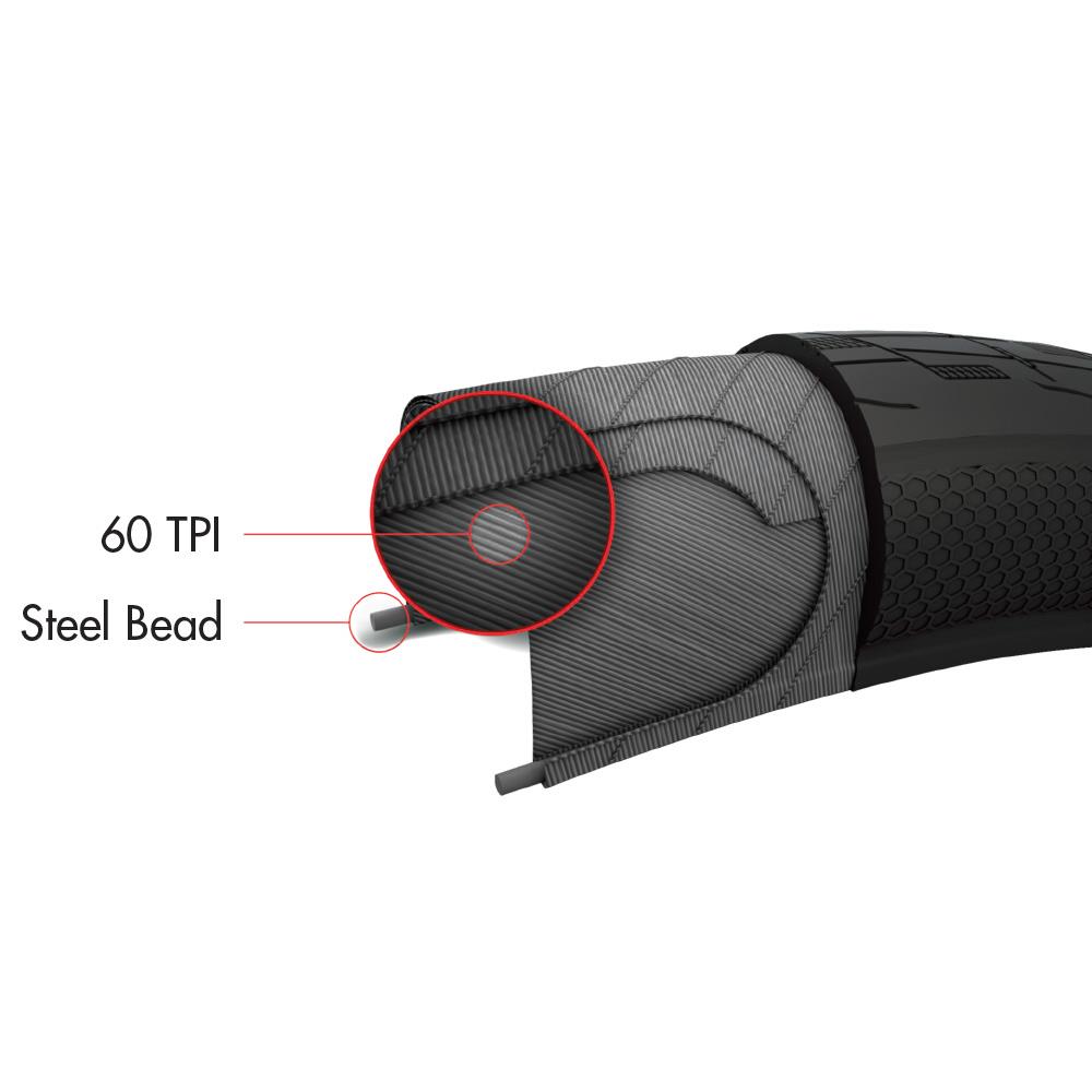 • Chemical Etching On Tread: Special chemical surface etching applied to centre tread creates fine surface texture that enhance traction on wider variety of track surfaces.